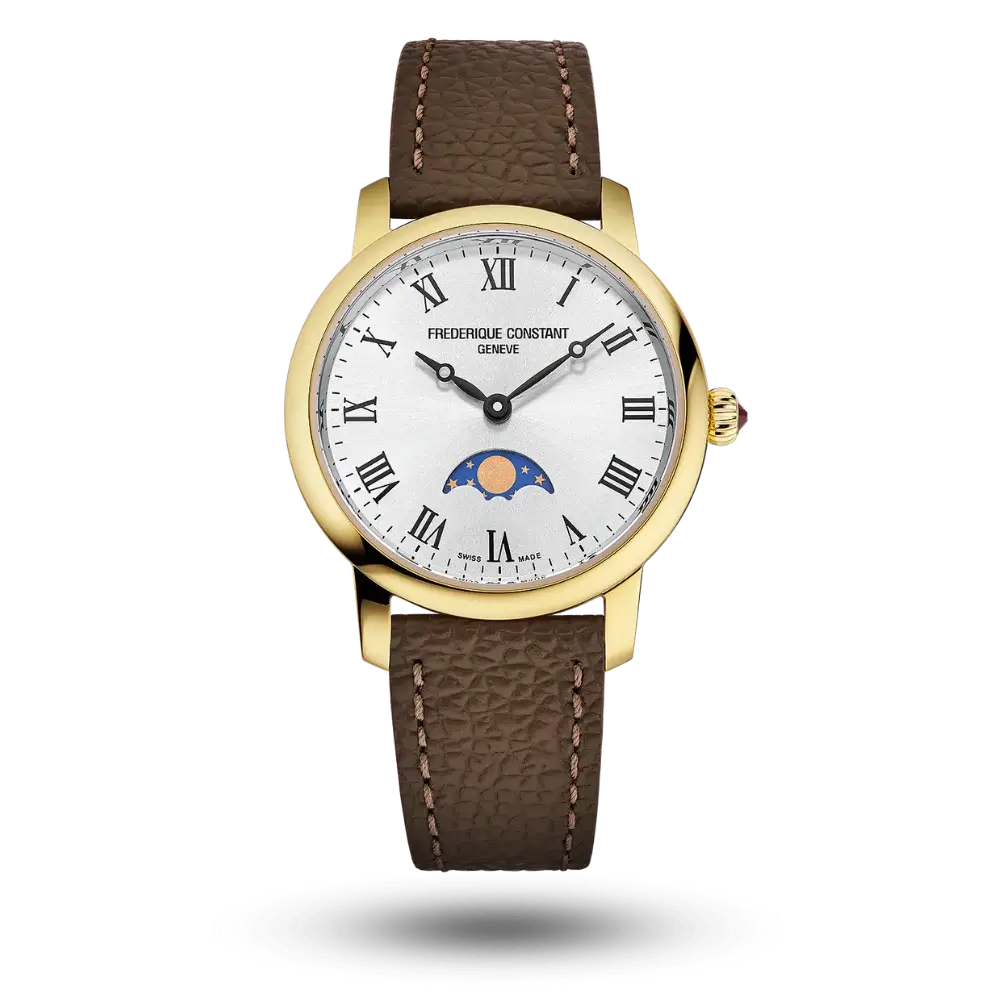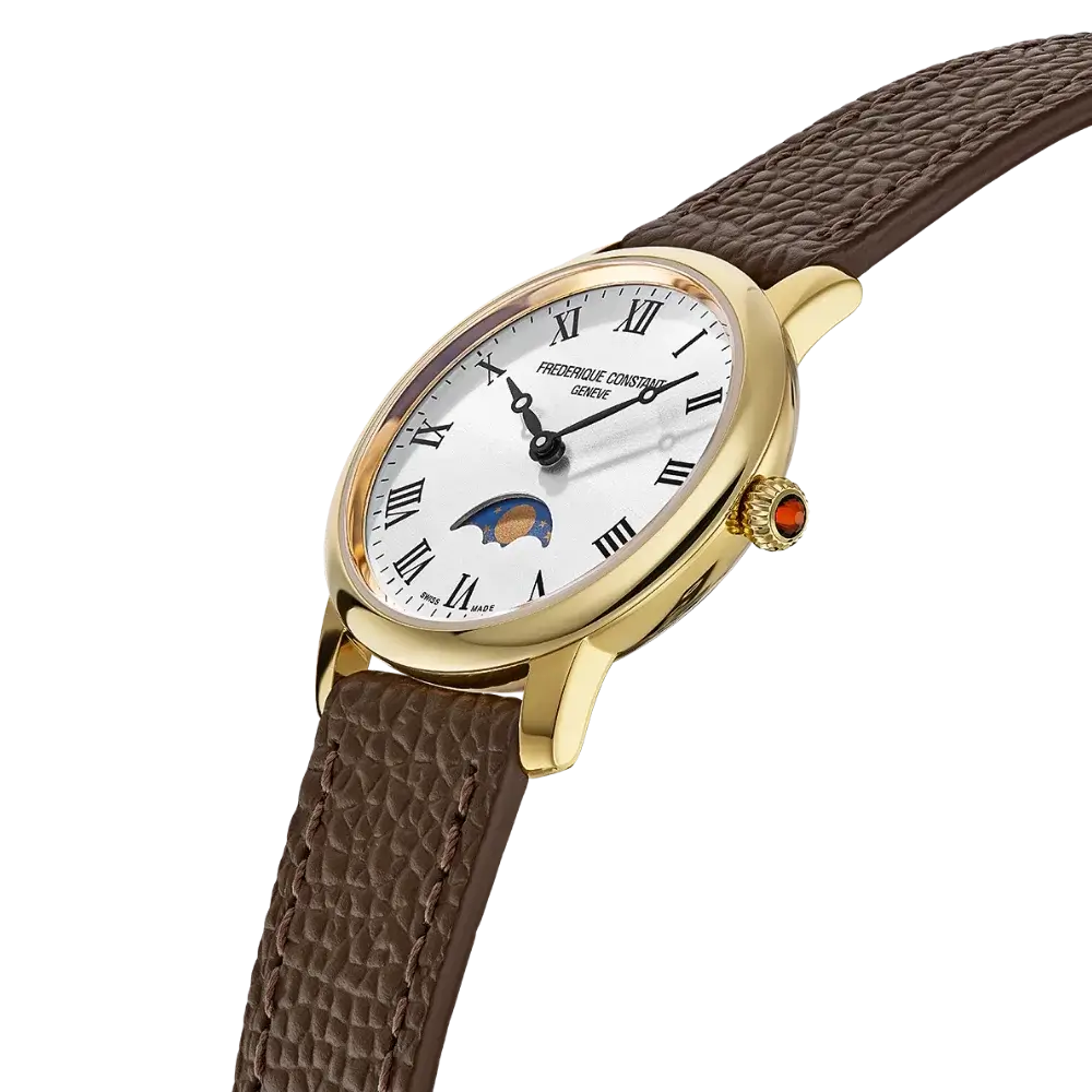 Frederique Constant FC-206RS1S5 – это элегантные женские часы, которые сочетают в себе классический дизайн и современные технологии. Модель с круглым позолоченным стальным корпусом диаметром 30 мм идеально подходит для изящного запястья, подчеркивая утонченность и стиль. Ультратонкий кварцевый механизм калибра FC-206 обеспечивает точность хода и надежность, избавляя от необходимости частой подзаводки, что делает часы практичными для повседневного использования.